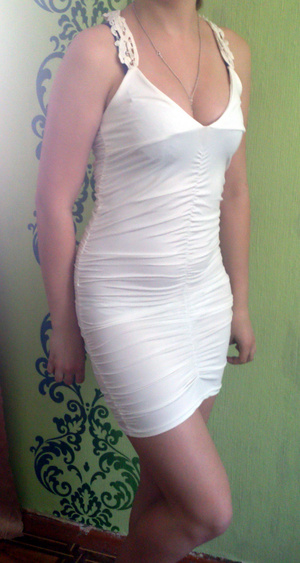 Причина продажи: платье заказывала себе,т.к.понравилось,когда пришло ушила по бокам.В итоге поняла,что носить не смогу,т.к. прибавляет внешне 2 размера груди,а у она у меня итак почти 4.
