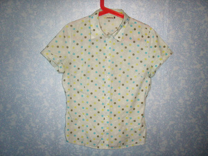 Очень стильная блузка оранжевого цвета,размера XS.На наш пойдет от 40 до 44.