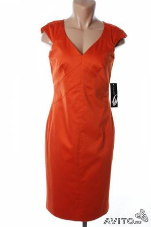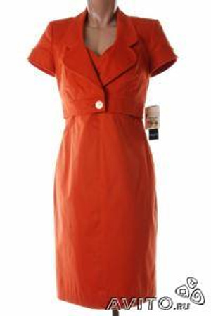 Неувядающая классика. Элегантные платье-футляр и жакет-болеро на одной пуговице красно-оранжевого цвета. У платья сзади – замок и шлица, по бокам – состыкованные уголком отрезы, смотрятся элегантно. Ткань – очень качественный плотный хлопок. Смотрится супер, очень респектабельно. Производитель – американская фирма Nine West. Достойный бренд классического направления. Сшито на невысокий рост, максимум 165 см. Объемы 89-70-90. Костюм надет один раз, состояние новой вещи. Первоначальная цена – 260 долларов. Нечто очень похожее другой расцветки я видела недавно в фирменном магазине Baltman: платье за 4900 рублей + болеро 4900 рублей. Отдам за 900 рублей