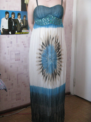 тонкий шифон, пойдет и на высоких(на ротс 169 отлично+можно и еще,А ВОБЩЕ ОТ 160СМ) Привлекательная расцветка, лиф уплотнен! ИДЕТ НА 42-44р И 44Р(НА ФОТО!)--ДЛИНА-127см+лямки 16см(регулировка!)-1300р