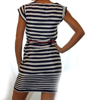 По низу платья отделка - застрочено рядами.