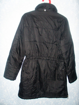 пальто черн, подклад синтепон деми, 44-46 р-р,б/у, на рукаве дырочка (видно на фото), ее можно при желании зашить и не будет видно 300 р.