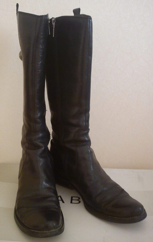 Сапоги зимние 39 р-р. Натуральные кожа и мех, мех по всему голенищу. Голенище на тонкую икру Небольшой косячок на каблуке – сзади оторван кусочек материала, обтягивающего каблук (выглядит как пятнышко, на фото видно при увеличении) (700 руб)
