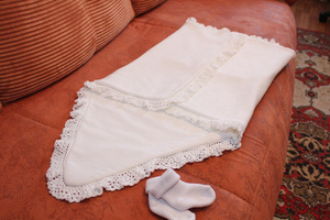 Это ты своими руками сотворила? Красиво) я тоже буду в белом с малышиком, правда у меня не конверт, а комбенезон будет вельветовый, я так намучилась с его поисками, в магазинах наших такое все скучное и не интересное, как итог, мне его из Москвы привезли и у меня полная уверенность что мы будем не на кого не похожи)