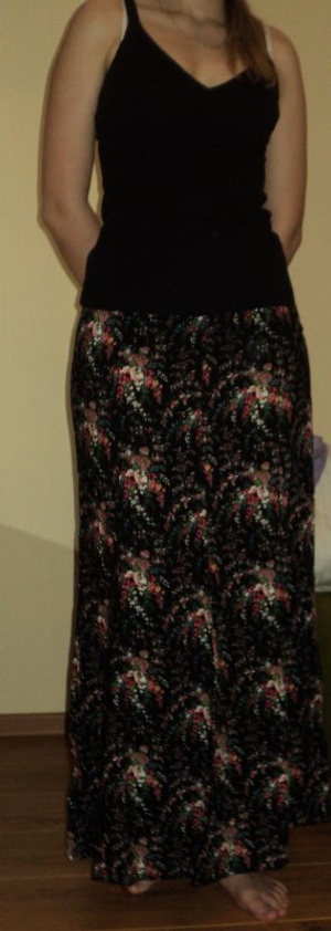три юбки в пол, все три ношу на бедрах, все три не плиссе. Одна каюсь Зара, каюсь корал, но она для пляжа и она ярусами. Еще джинсовая такая кантри-кантри, и шелковая бежевая в мелкий цветуечик. Еще есть платье (прямо не устаю хвастить им) длинной 154 см ))))) ну и всякие других длинных платьюшек сто миллионов.