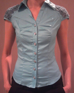 3. Голубой топ. Одевался один раз. Цена 150 руб. (без примерки 100 р.)