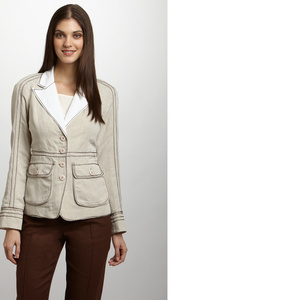 Жакет новый, с этикетками. Льняной, без подклада. Качество превосходное. С подплечиками. Очень люблю этого производителя. Спокойные классические вещи, но всегда с изюминкой, все очень качественное и достойно выглядящее. Бренд любимый многими знаменитостями. На повседневку его предпочитает, в частности, певица Мадонна. Стоил 330 долларов. Ношу такой жакет с превеликим удовольствем - замечательная вещь! Подходит с к строгим брюкам, и к джинсам, и к юбкам, и к платьям