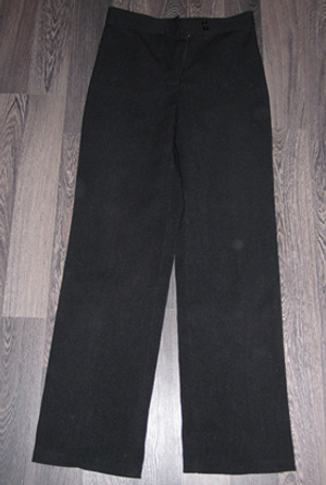 2. Черные плотные брюки в тонкую , незаметно-белую полоску, небольшой клёш. размер 40-42 - 200 руб.