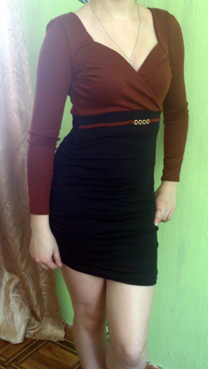 4. Платье "Плэнет" - трикотажное, из закупки шведской одежды, цвет какао. Р. 46, трикотаж плотный, но не толстый. В комплекте с платьем идет ремешок. Модель очень интересно смотрится - хорошо видно на фото с синим платьем, а цвет - как на втором платье. Цена - 500 руб.