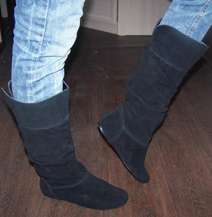2. сапоги д/с, замша из закупки STRANGE. Подошва 2 см, каблук 8, взъем низкий. Сапоги без молнии - поэтому не могу надеть и продаю. Подойдут на 37,5-38. Высота голяшки – до середины икры. Длина по стельке 25,3. Новые, в коробке, каждый сапог еще в мешочек упакован. Колодка очень удобная - по отзывам тех, кто носит. Цена - 600 руб.