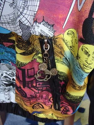 для тех, кто не знаком с этим брендом - стразы по вороту, мелкие блестящие клепочки на кокетке и поясе...