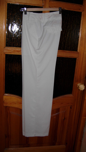 4. Брюки прямые синие.Прямые.Сбоку - лампасы,прорезные карманы сзади на пуговице.Легкая х/б ткань. . Малы они мне! р-р 42-44 . Цена - 200 руб.