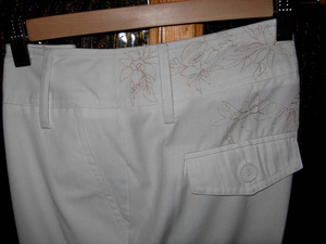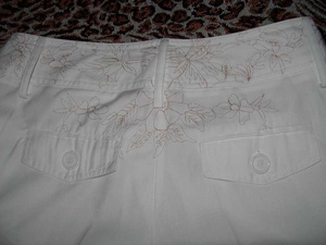 1. Черно-коричневые вельветовые бриджи (на фото не пятно, а блики). Заклёпки, фигурная вышивка и выбивка. Р-р 42-44, пару раз носились. Цена - 100 руб.