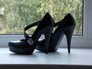 туфли 38 р-ра , Б/У, черные, лак кожа, каблук 6см, "FRANCESCO DONNI"ОЧЕНЬ комфортные, на НЕузкую ножку