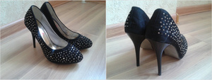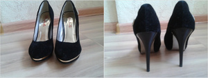 Черные замшевые лодочки, очень красивые, размер 40, мне большие. Цена 2300
