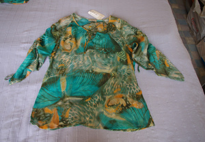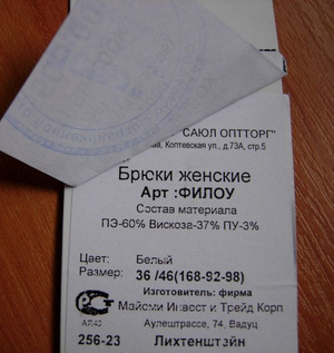 костюм из натурального шелка с этикетками;