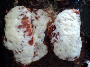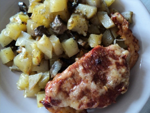 Я пока ждала мужа закрыла форму фальгой и сырная корочка немного сползла.