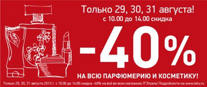 29,30,31 августа с 10.00 до 14.00 -40% на ВСЁ в Л'Этуаль!