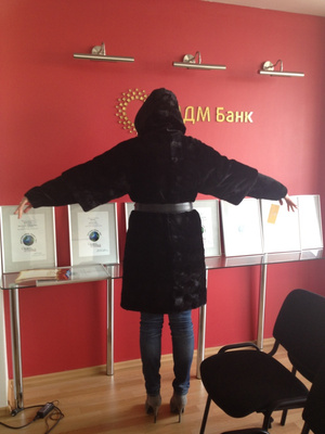 Размер на 42-44., длина 85 см, чуть ниже попы. Нужно мерить. Цена 55 000 т.р. Если заинтересовала модель и есть желание примерить, звоните по телефону 89130086512. Галина