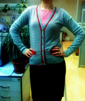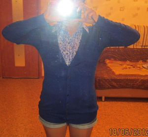 1. Синяя трикотажная кофточка Zara. Размер 44-46. Цена 500 руб.