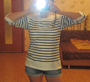 1. Белая в зеленую полоску кофточка Zara. Рукава в 2 вариантах: обычные и на пуговичке.