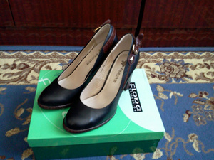 Новые кожаные туфли 37 размера. Идеальны для офиса. Красивый, устойчивый каблук, удобная колодка. 800р. Цвет черный, без косяков (фото дает блики).