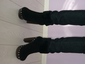 Девочки, продам зимние сапоги 37 размера. Альба. Состояние хорошее, мех овчина по всей длине. Есть косяк-ободранные каблуки. Были сделаны в мастерской, но уже не то:(есть шанс перетянуть заново, но мне не до этого). Сами сапожки смотрятся очень эффектно. Покупались за 11000. Продам за 900р.