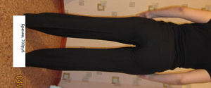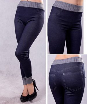 3) Легги. Описание: вискоза 95% эластан 5%.Теплые брюки- треггинсы из плотного трикотажного полотна с ворсом.Пояс изделия и манжеты низа брюк выполнены из полотна компаньона - "лапша". Задняя и передняя часть брюк украшены декоративной отстрочкой в виде карманов. Пояс на резинке. Цвет; синий, размер-46 (рост170; ОБ-100-104). Фирма Wissel. Цена - 680 руб