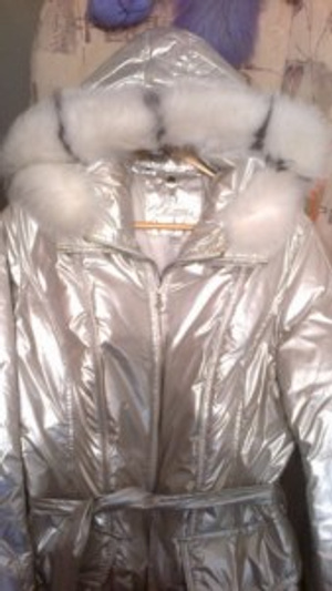 Продам красивый пуховик бело-серебрянного цвета.