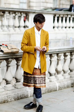 Мне очень нравится, когда мужчины используют яркие аксессуары. Смотрится интересно и не возникает вопросов об их ориентации. Палантины, шарфы, перчатки, сумки, обувь, ремни - огромный простор для фантазии. А уж если надевать юбку, то продумывать все до мелочей и чувствовать себя в этом нужно очень комфортно. Девушки выше постили фото с мужчинами в юбках - очень стильные и необычные, и не вызывают неприятных эмоций.
