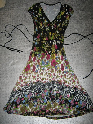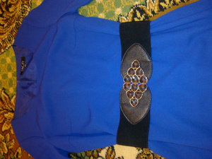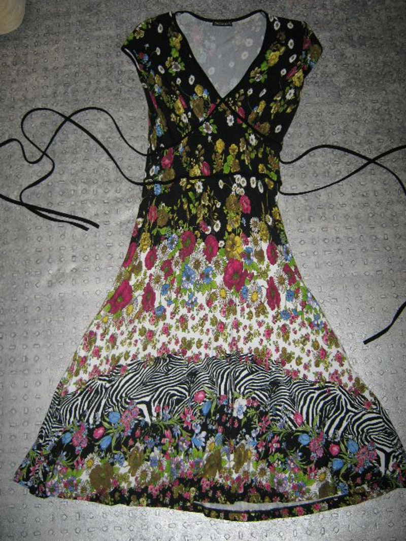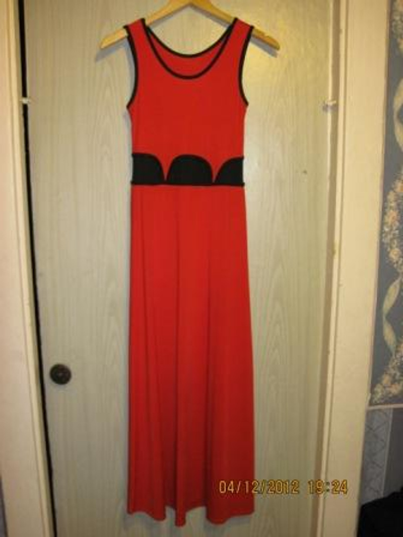 2. Платье-сарафан неизвестной турецкой фирмы, с черной вставкой на поясе. Я ростом 168, мне оно в пол. Р-р 44. Плотный трикотаж, сзади небольшой разрез. Надето 2-3 раза. 1000 руб.