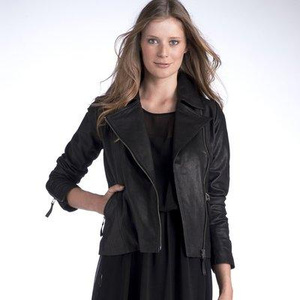 - Из козьей кожи наппа. Асимметричная застежка на молнию. Нагрудный карман и боковые карманы на молнии. Рукава с молниями. Длина ок.52 см. - 42 размер (франц.) на наш 46-48 - 4 450 руб. (по этой цене купила со скидкой). Мне оказалась мала. Кожа очень мягкая.