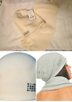 Новая шапка с шарфом, цвет молочный. 300 рублей
