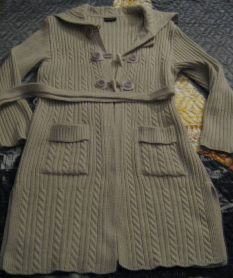теплый трикотажный кардиган-пальто песочного цвета на высокую девушку, р-р 46-48 (50?)