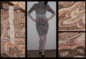 5. Очень красивое платье! размер S цена 500 р. немного тянется. на 40 будет велико, идеально на 42, подойдет и на 44 (по ОГ, но без "животика"). Сама носила бы с удовольствием, но похудела, мне стало большое. Состояние отличное, пятен, затяжек и катышков нет."