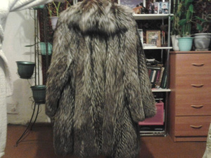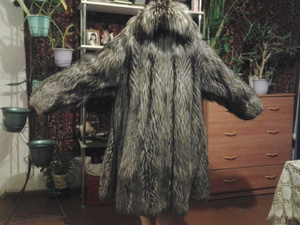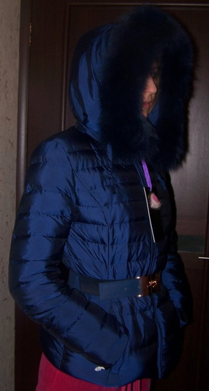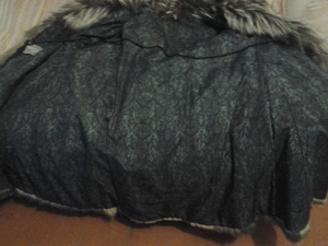Силуэт полуприлегающий. Капюшон отделан пушниной чернобурка.Смотрится красиво,дорого.Рукава и низ изделия присборены. Пояс из кожи (не блестящий), завязывается. Застежка на крючках.