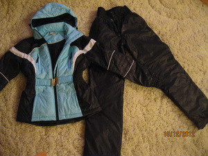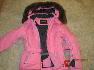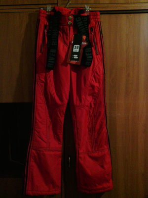 Костюм зимний лыжно-прогулочный НОВЫЙ, размер 38 (наш 44) на рост 155-160см (вентиляция, ветрозащитная юбка, много карманов, опушка, капюшон, лямки отстегиваются...), очень яркий, хорошего качества.