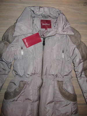 Новый пуховик MaxMara рр 46 , цвет в реале серый, вязанные вставки на рукавах и карманах 70-80 % пуха, длина рукава 60-62см 1500р