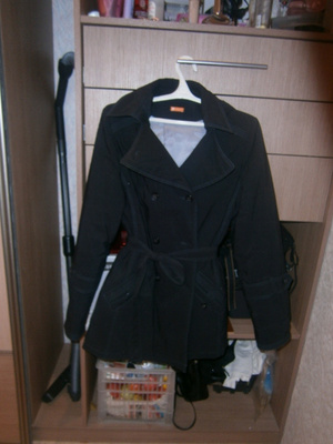 2. Курточка, материал мягкий. Мех искусственный, отстегивается (на пуговицах). Размер 40-42 (я носила не на пуговице, а с запАхом на поясе). На рост 170 рукава короткие. Внутри подклад по спинке разошелся по шву, умелым ручкам исправить - дело 15-ти минут, внешних дефектов нет. Цена 800 р.