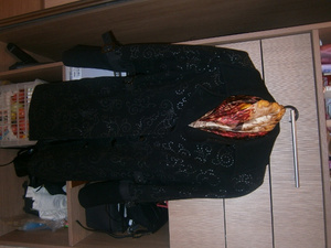 1. Костюм (Брюки, жилетка, пиджак удлиненный и юбка). Цвет темно-зеленый. Мне большеват, размер 44.