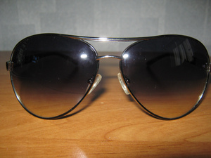 Женские очки. Линза со 100% защитой (проверяла в оптике). Цвет серо-зелено-коричневый градиент. На солнце темнеют. Тонкие металлические дужки. Подойдут для широкого лица. цена 300р