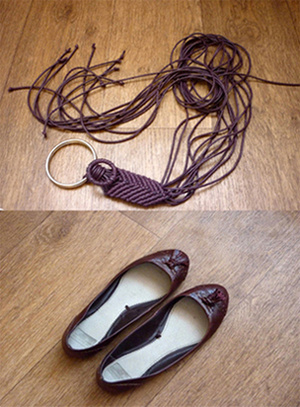 цвет бордовый, в комплекте идет коричневый ремень, расположен под грудью