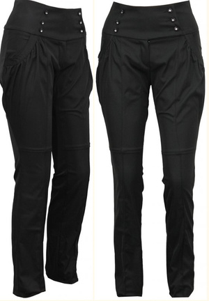 3.Черные прямые брюки на холодное время года. Ткань плотная, черная с небольшим добавлением блеска.Привезены из Германии. Размер 44. Цена - 200