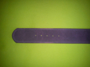 Ремень замшевый. Длина до первого крепления 67 см, до последнего 77 см, всего длина 87 см Ширина 6,5 На одном конце есть небольшие потертости – видно на фото №3 (200 руб)