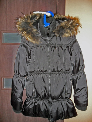 Пуховик р-р 42-44, на спине паетки, манжеты все в виде вязаной резинки, не короткий - попу прикрывает, мех натуральный... енот 1500 р.