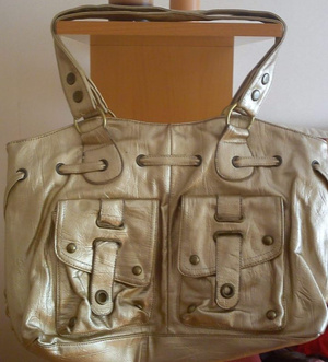 Сумка золотая на молнии. Подклад из тонкой замши. Внутри 1 отделение и 3 кармана: 1 для мобильного телефона, 1 на молнии и 1 обычный Внешние карманы и отделка видны на фото Состояние идеальное (400 руб)