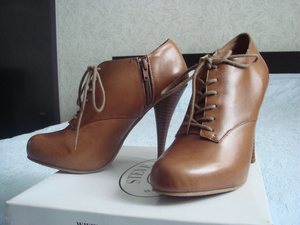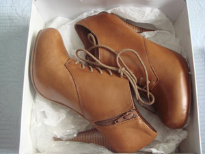 Продам новые ботиночки Steve Madden. Цвет коньяк, размер 8US (38). Натуральная кожа снаружи и внутри, каблук наборный деревянный, в виде конуса. Спереди шнуровка, сбоку застежка на молнии. Абсолютно новые. Цена 2500 руб.