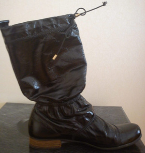 Полусапожки осенние 39 р-р. Б/у пару раз. Лаковая кожа. Повреждений нет Голенище на декоративной горизонтальной резинке, без замка На невысокий взъем Состояние идеальное (1000 руб)