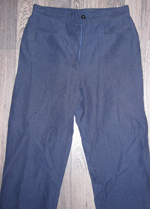 2. Брюки прямые синие. Сбоку - лампасы, прорезные карманы сзади на пуговице. Натуральная ткань. р-р 42-44 . Цена - 200 руб.