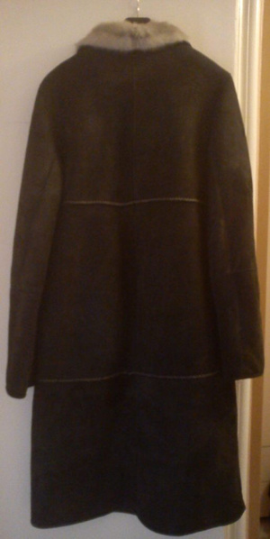Дубленка 44-46 р-р, цвет темно-серый Отделка норкой на воротнике, норка серая, без желтизны. Пластины дубленки с плотным подпушком Очень длинный рукав, можно подворачивать При росте 174 см длина закрывает колени (2500 руб)